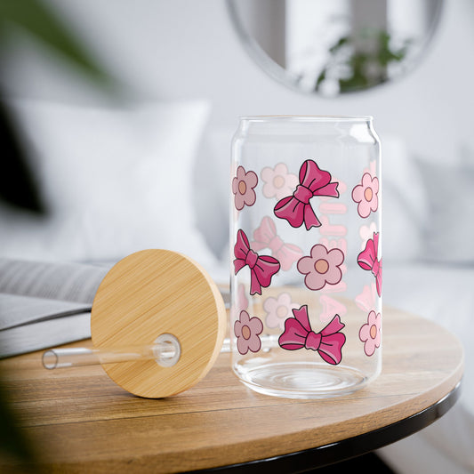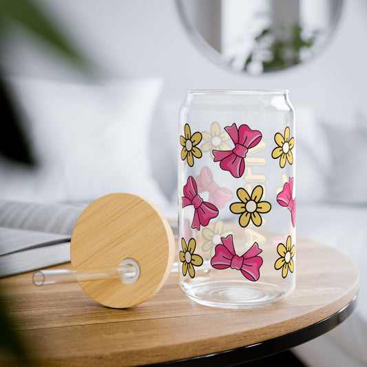 Customizable Bows & Flowers Glass Tumbler