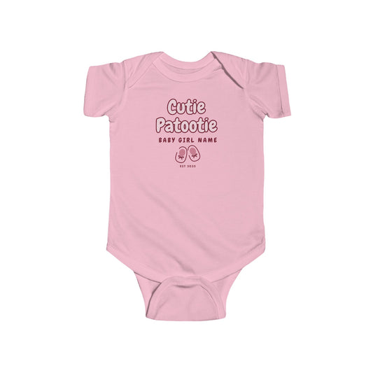 'Cutie Patootie' Baby Girl Onesie With Personalizable Name and Year On The Front